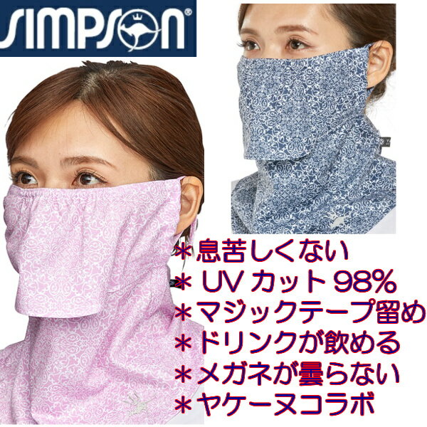 【GW期間出荷可(5/3除く)】シンプソン (Simpson) 息苦しくない 日焼け防止マスク UVカットマスク 日焼け 防止 予防 洗える 日よけ マスク フェイスカバー フェイスマスク ヤケーヌ テニス ゴルフ 自転車 ランニング ジョギング 農作業 登山 ドライブ 送料無料 STA-M03